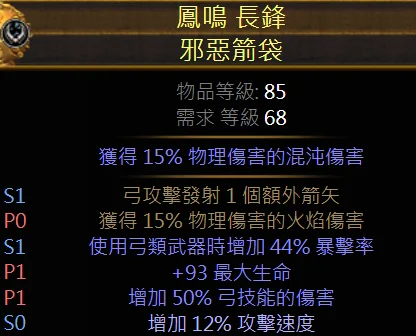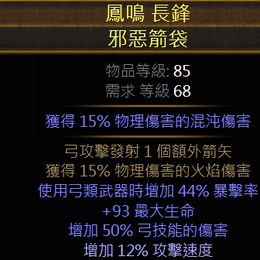市面唯一5T1雙破裂+1箭矢物理火焰傷(邪惡箭袋) 30%附加傷害生命暴率技能傷