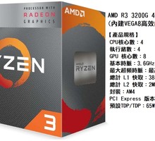 AMD R3 3200G 3.6GHz 4核4緒 CPU VEGA8內顯