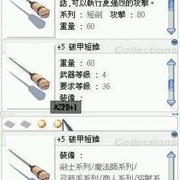 破甲短錐1洞 當對方的防禦力越高時 會給予更強烈的攻擊力 系列-短劍 攻擊70 重量60 武器等級4
