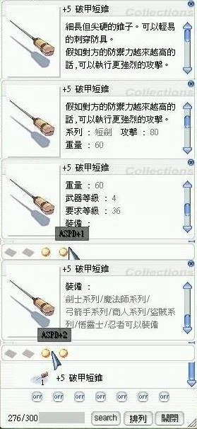 除靈短劍 系列-短劍 攻擊90 重量70 武器等級4 要求等級36 裝備-劍士系列,魔法師系列,弓箭手系列,商人系列,盜賊系列,悟靈士,忍者