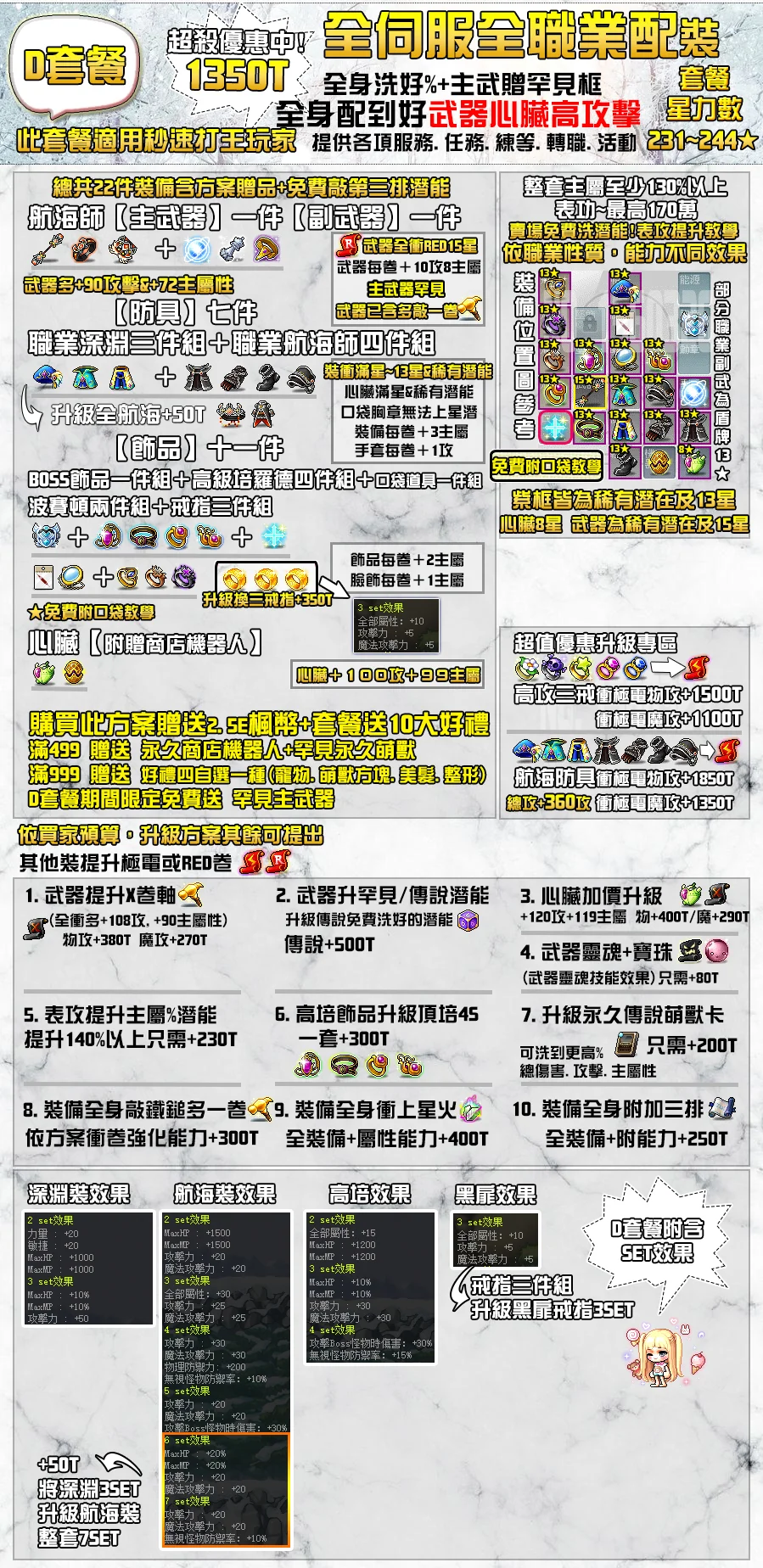 總套組懶人包(加購專區及裝備配置詳細於圖上):以下不含練等(練等僅接燃燒時段)