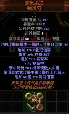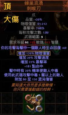 【標準】蜂巢浪湧 刺喉刃(疊毒專用)【頂+170%物理增傷+攻速暴擊+機率中毒】