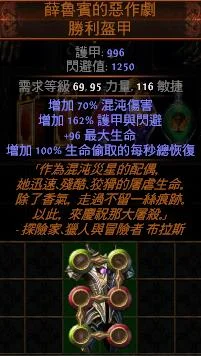【標準】6L薛魯賓的惡作劇 勝利盔甲【+96生命70%混沌傷害】100%每秒偷取