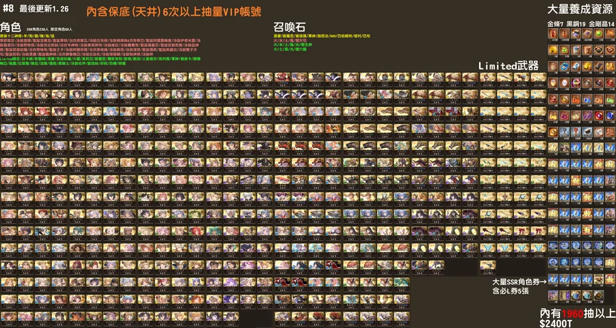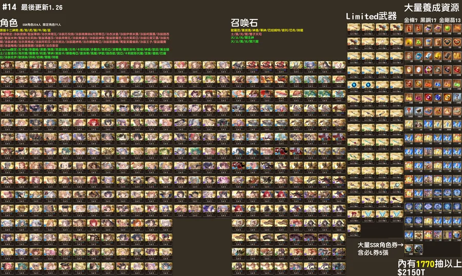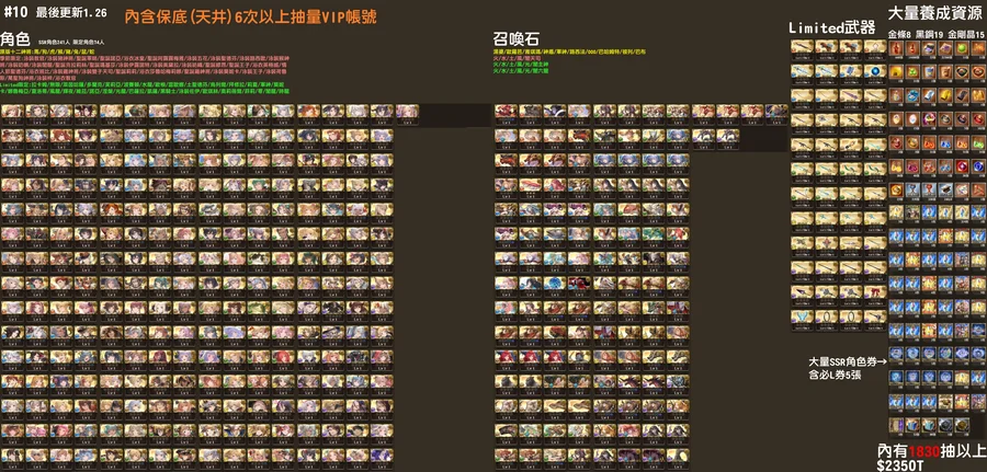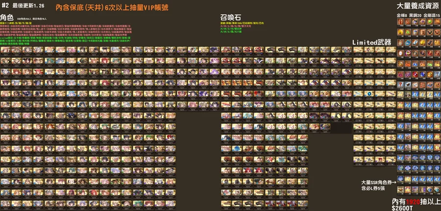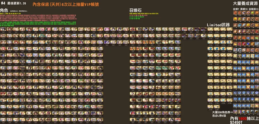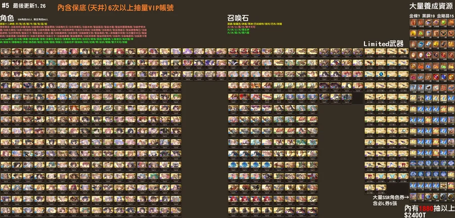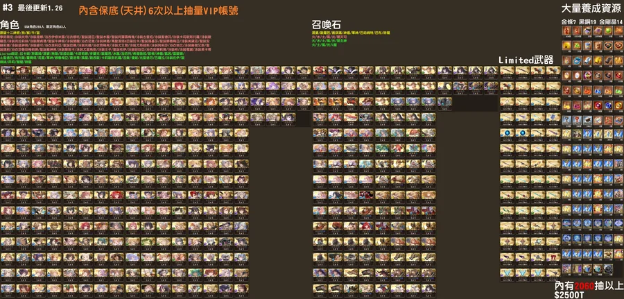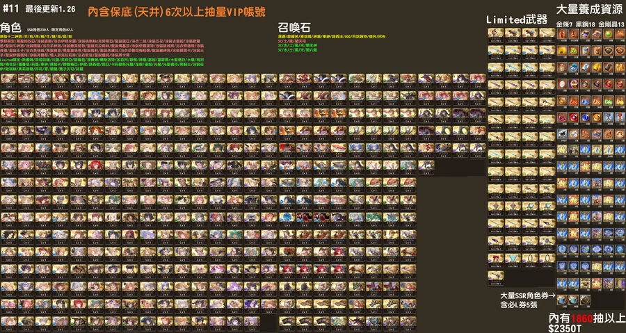 ※輪盤期間帳號內多出許多新限角和召喚等 但圖片未更新之前都以舊圖片價錢為準