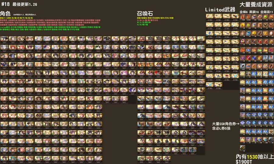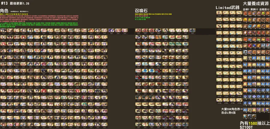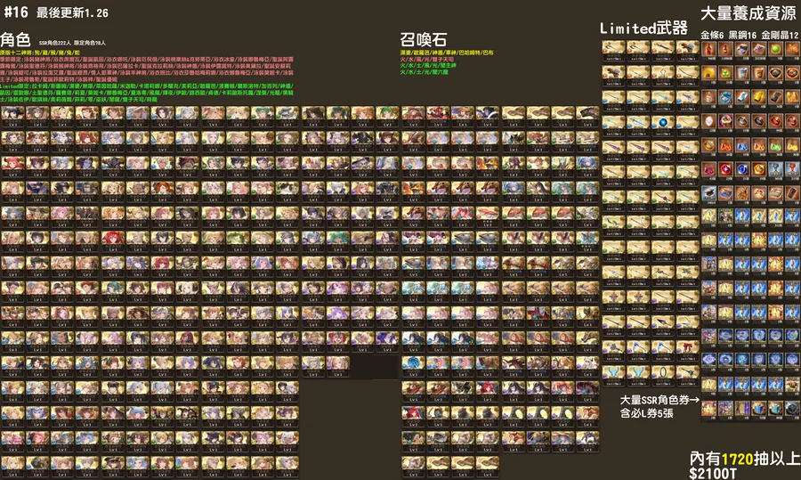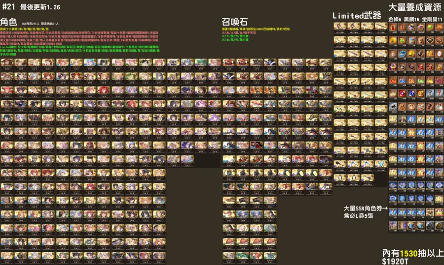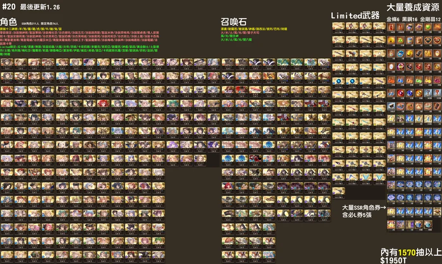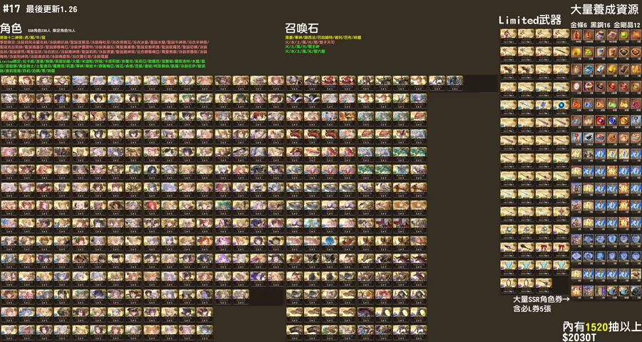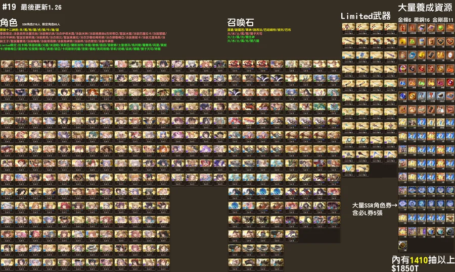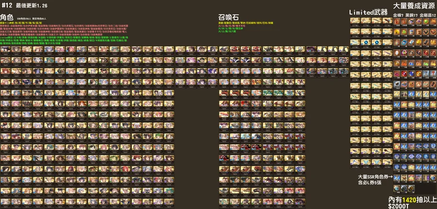 ※輪盤期間帳號內多出許多新限角和召喚等 但圖片未更新之前都以舊圖片價錢為準