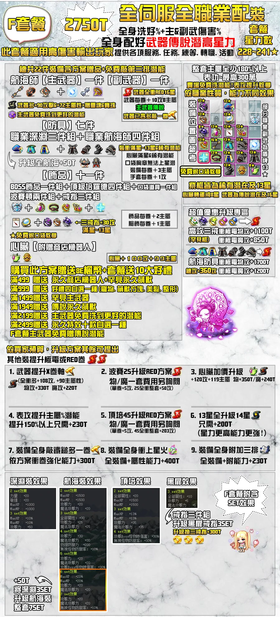 總套組懶人包(加購專區及裝備配置詳細於圖上):以下不含練等(練等僅接燃燒時段)