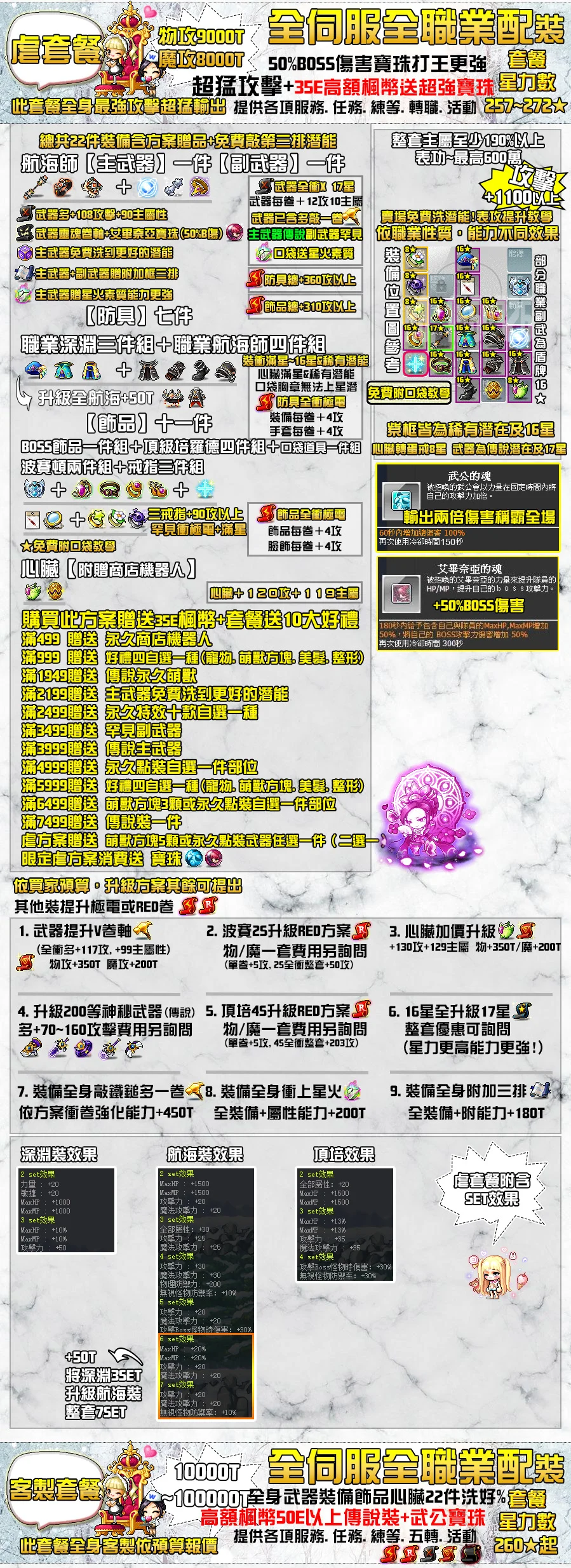 總套組懶人包(加購專區及裝備配置詳細於圖上):以下不含練等(練等僅接燃燒時段)