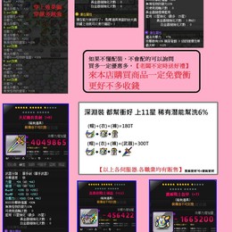 此單: 提問開單 🔥有缺裝備都可問,買多給你優惠價格🔥 🔥有缺裝備都可問,買多給你優惠價格🔥 🔥有缺裝備都可問,買多給你優惠價格🔥 ☆賣家小叮嚀☆ ω 下標後一律給【正面評價】下標視同同意此條款!ω ω 本賣場下標後不得取消交易,造成不便敬請見諒。ω ω 營業時間:全年無休。24H營業ω ω 未滿100T+6T手續ω ★祝您遊戲愉快★ ^___^
