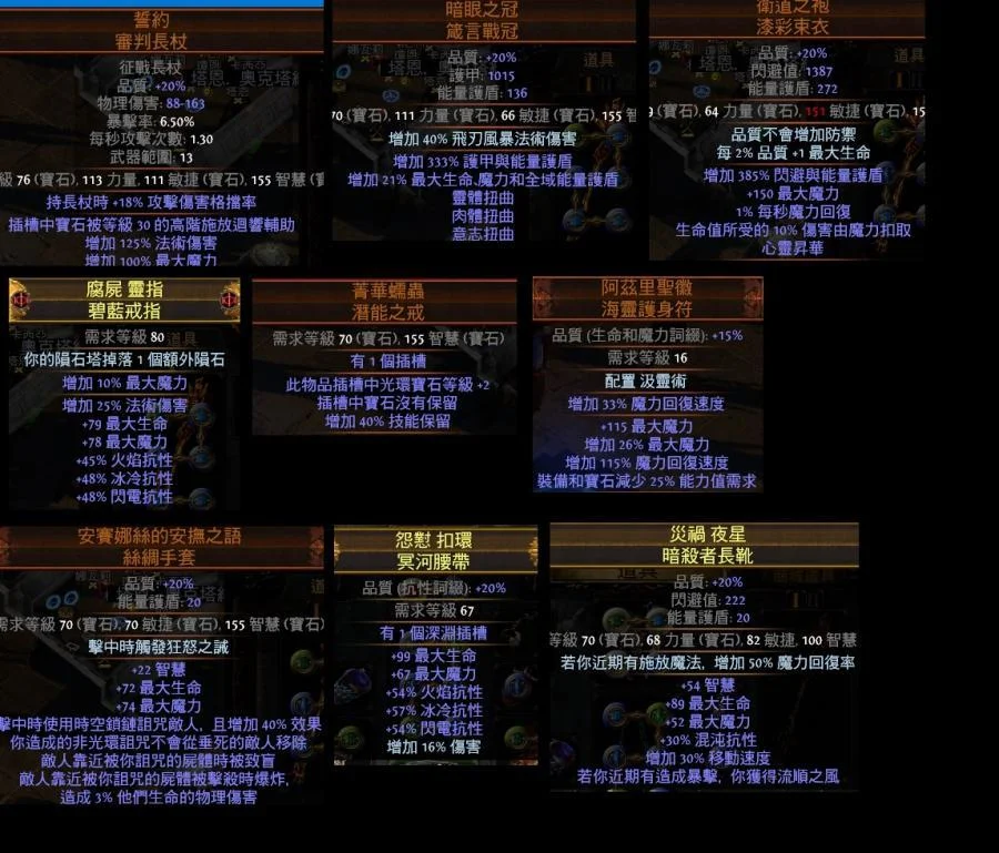 裝備 技能 天賦 藥水 珠寶 全部都有
