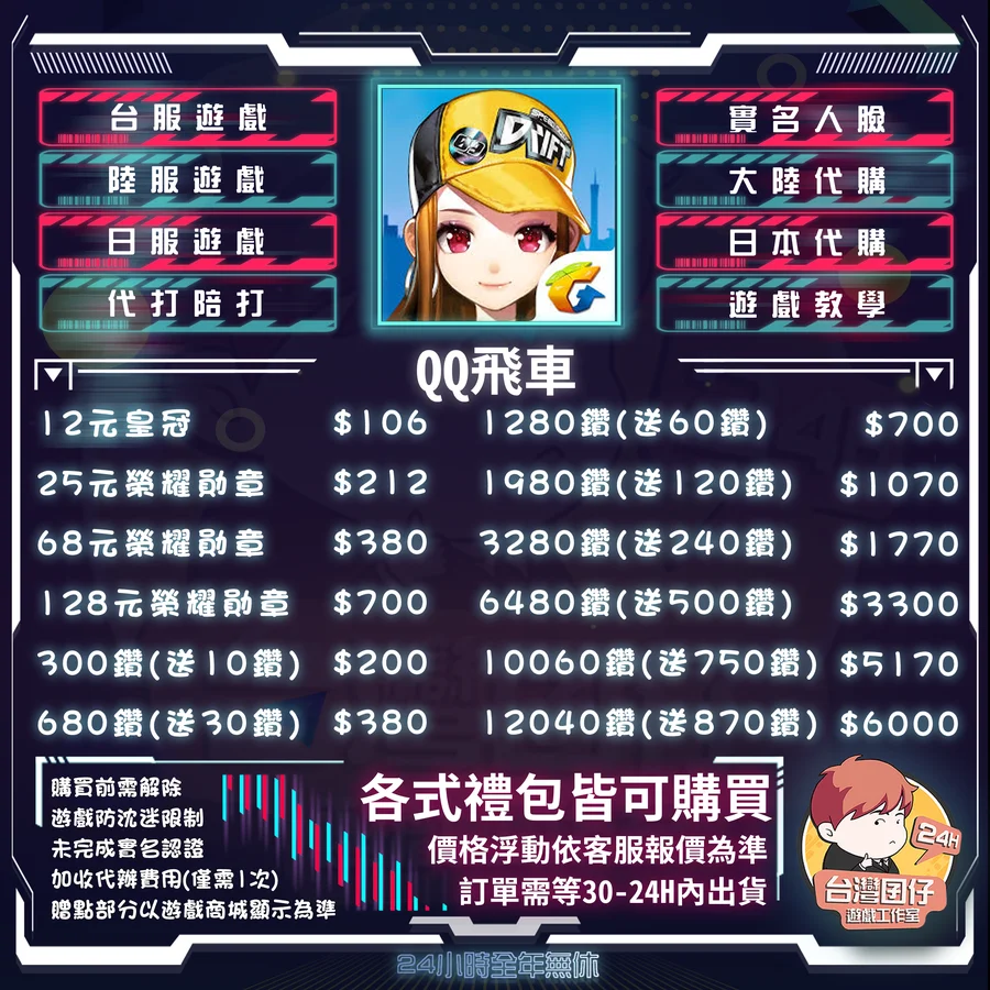 【12040鑽=6000元】🔥QQ飛車🏆騰訊官方認證🏆24H現貨秒出🏆台灣囝仔