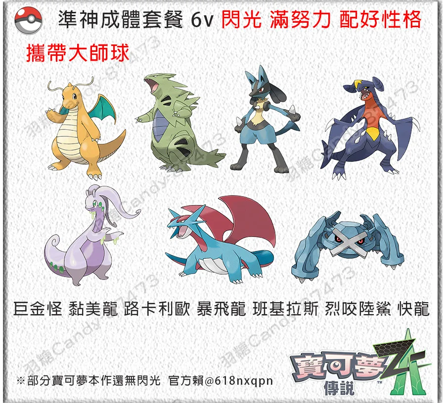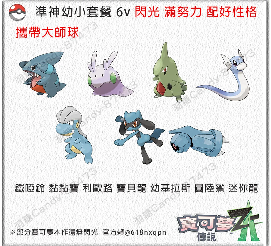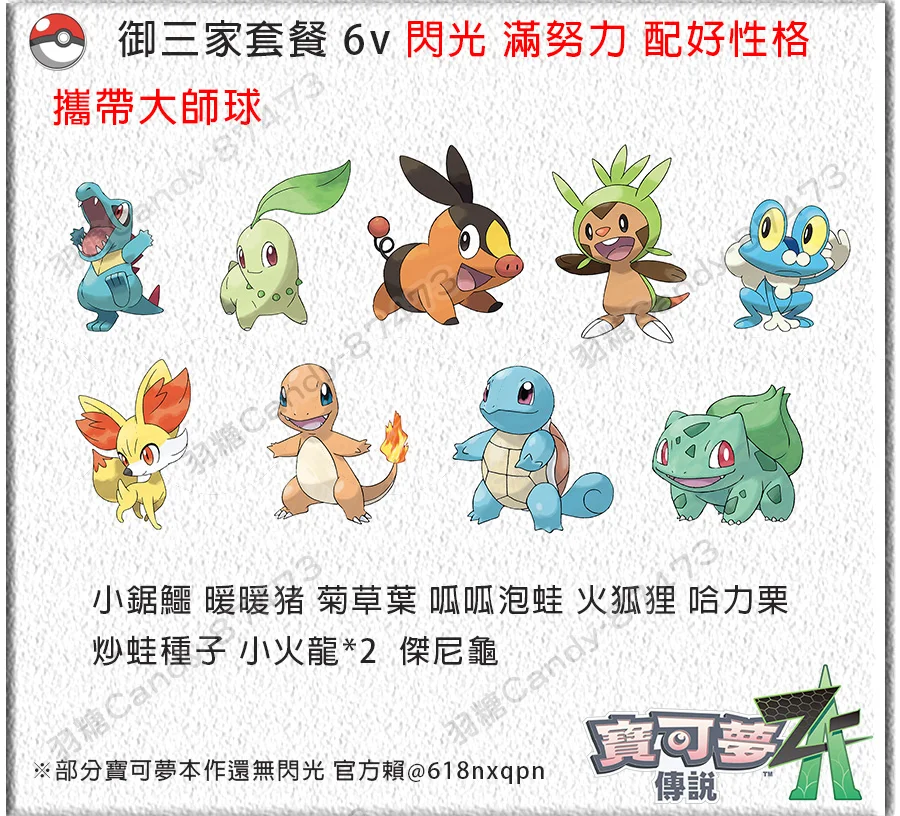 .《閃光禦三家套餐》 滿糖 配好性格努力 初階LV.5 色違 全6V 150*元 (3隻)