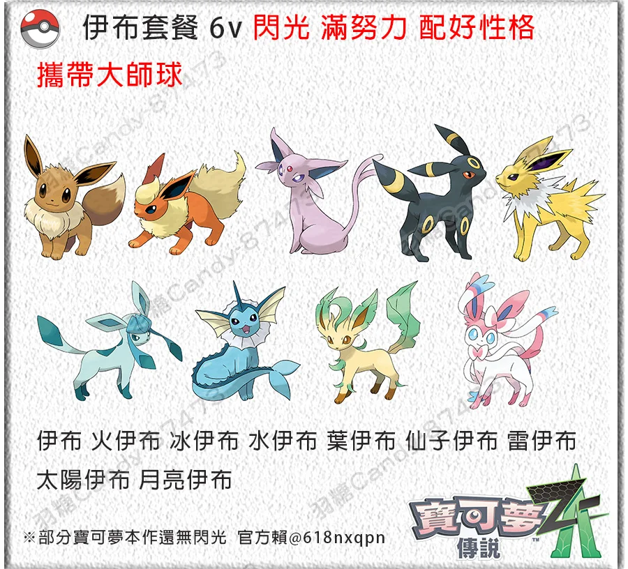 H.《伊布套餐》全6V 自訂等級/個性/色違 500 (9隻) 『+50可制訂道具跟個性 』