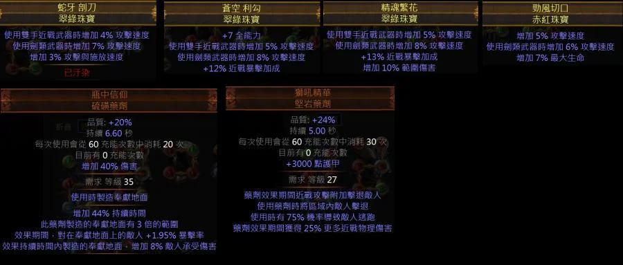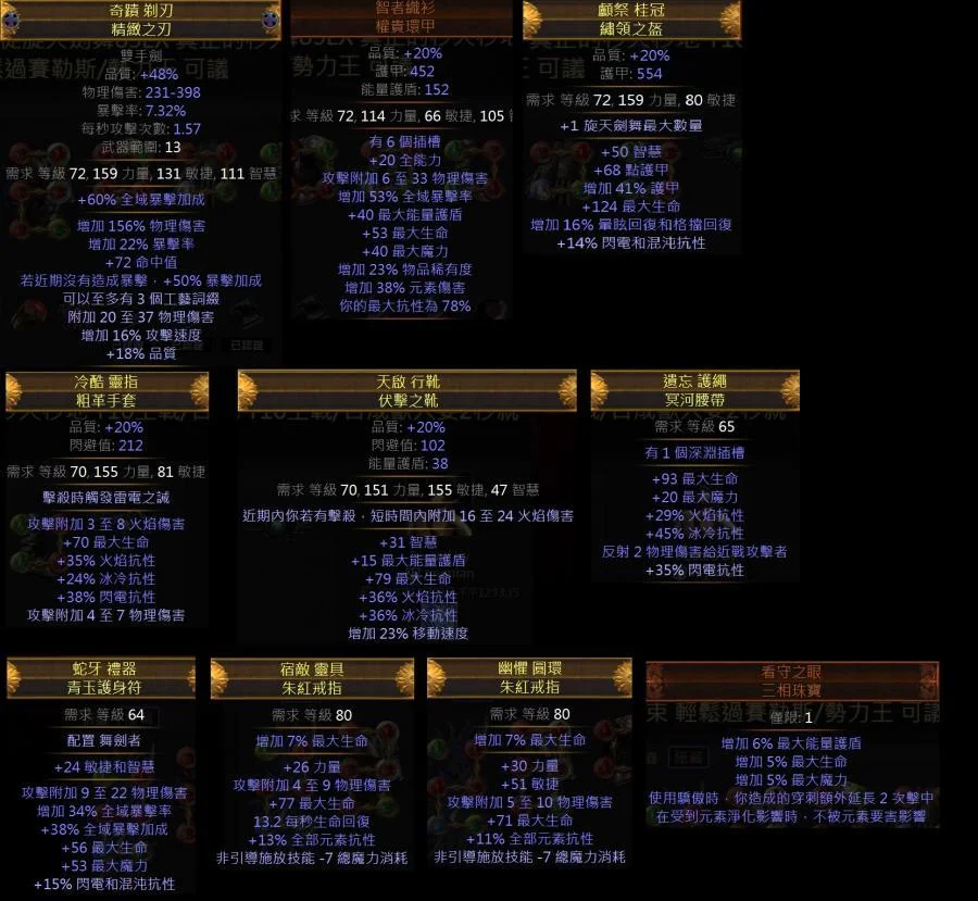 裝備 技能 天賦 藥水 珠寶 全部都有