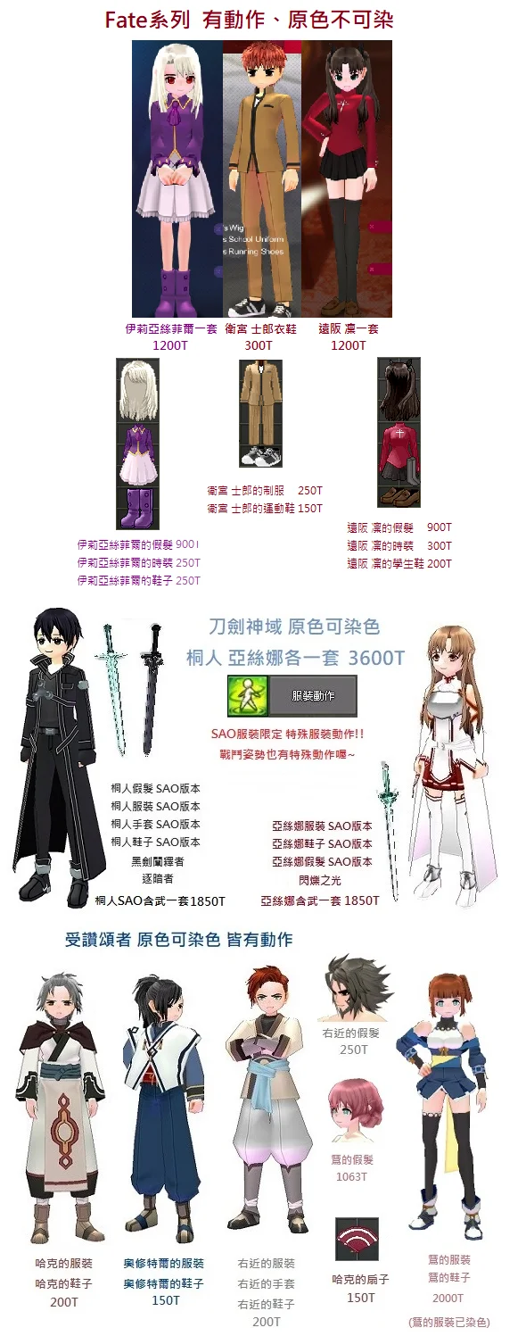 各式活動限定服裝道具~等你來收藏~在線即可馬上交易 請注意下列事項 祝交易愉快ヽ(●´ω`●)ノ✿本賣場並無授權HK85專區 HK買家無法直接下單購買 敬請見諒✿有疑問請在問與答提問 會盡快回覆您的訊息✿下標前 請確認所在伺服器 本賣場無跨伺服器交易 欲跨服交易買家請自行準備貝婷角色現場交易