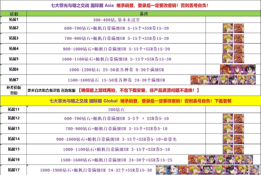拓展4: 1000-1100鑽石+隨機自備滿級UR 3-15個+SSR券5-10
