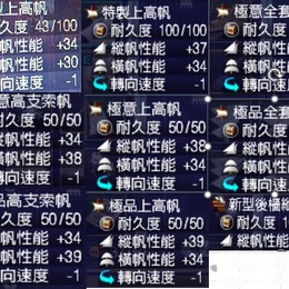 極品全套帆 200T縱帆性能+37、橫帆性能+37,回旋性能 -1 (37均衡)