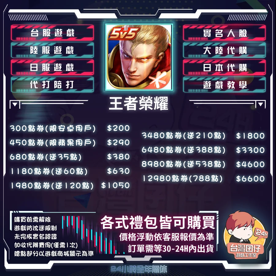 6️台灣囝仔台陸手遊代儲純粹為協助代儲服務,僅收取服務費,無賺取額外差價。