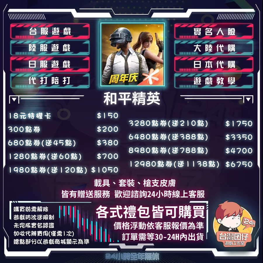 6️台灣囝仔台陸手遊代儲純粹為協助代儲服務,僅收取服務費,無賺取額外差價。