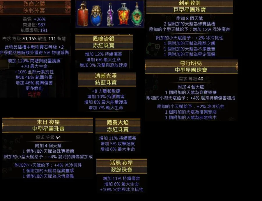 整套配好星團珠寶+4個生命%+混沌傷黃珠寶 全套技能都已滿等