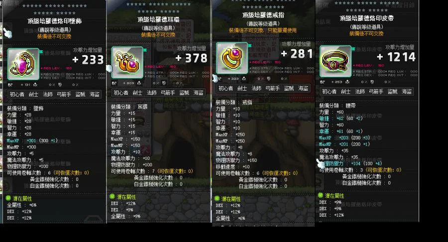 【頂級培羅德】120%敏頂級培羅德一套(頂腰頂墜頂戒頂耳主潛能都30%敏頂培)小資專用