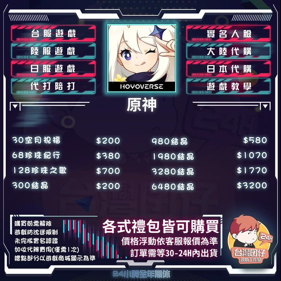 1.因商品成本+手續費+代付服務費,所以遊戲價格與代儲價格會有些差異。