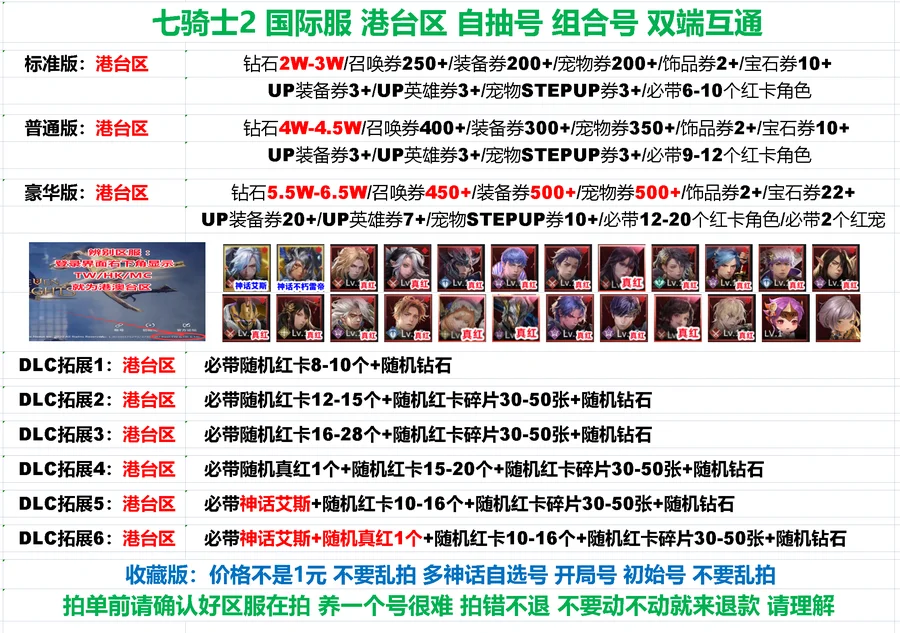 全 8591 首家 七騎士2自抽號國際服SevenKnight2自選多真紅開局號港台服區決賽