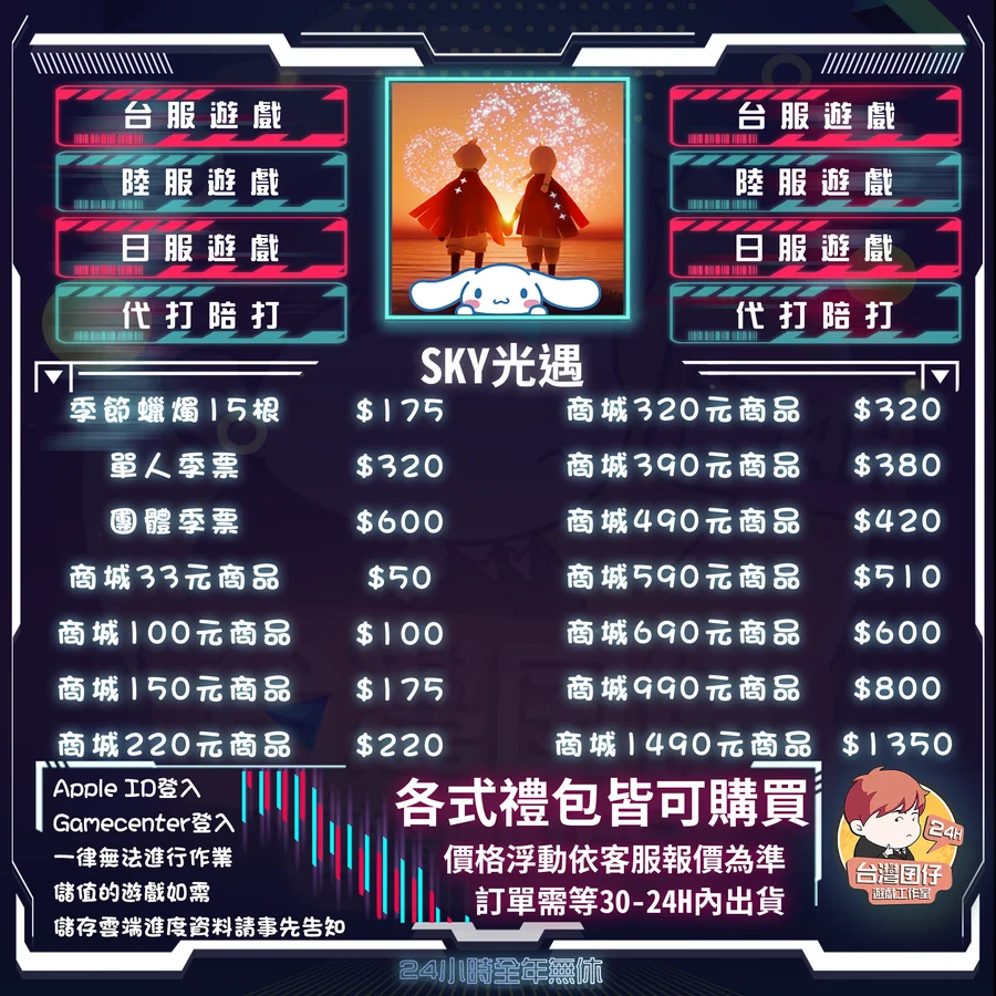 6️台灣囝仔台陸手遊代儲純粹為協助代儲服務,僅收取服務費,無賺取額外差價。