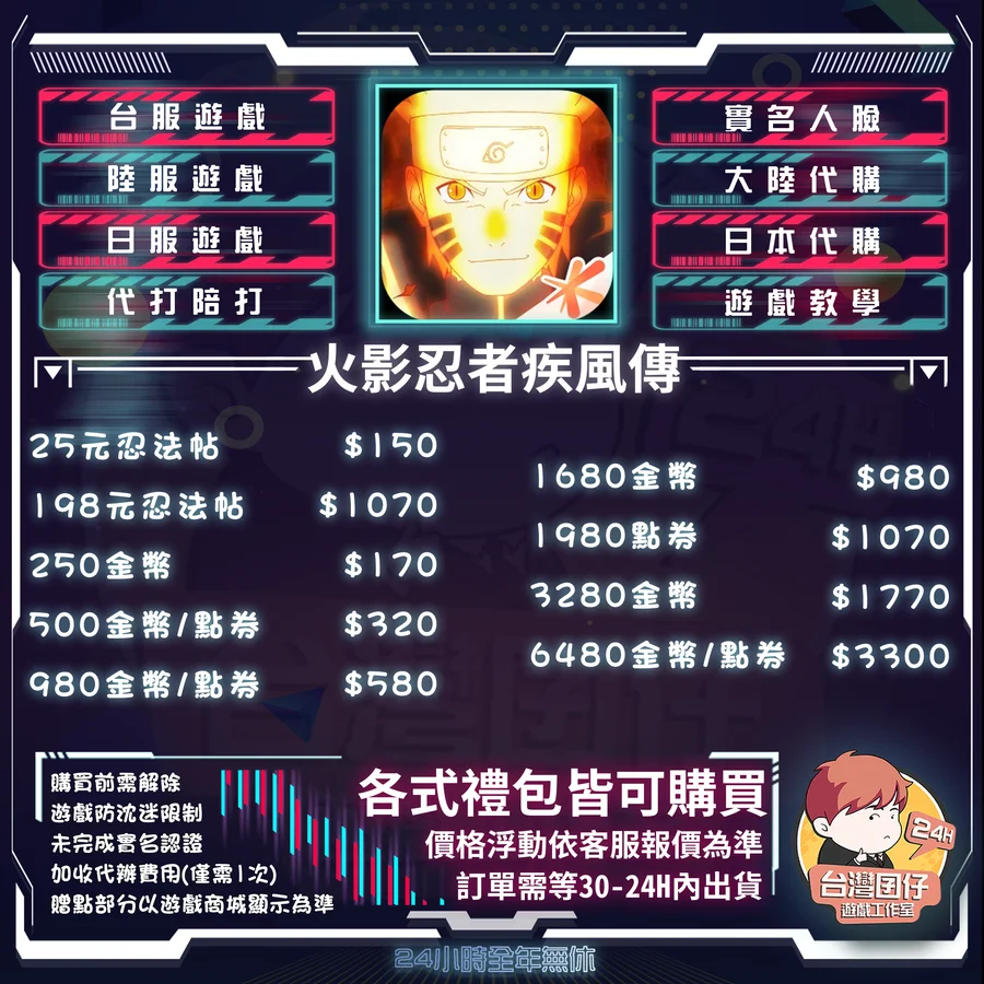 🏆 火影忍者陸服代儲賣場|