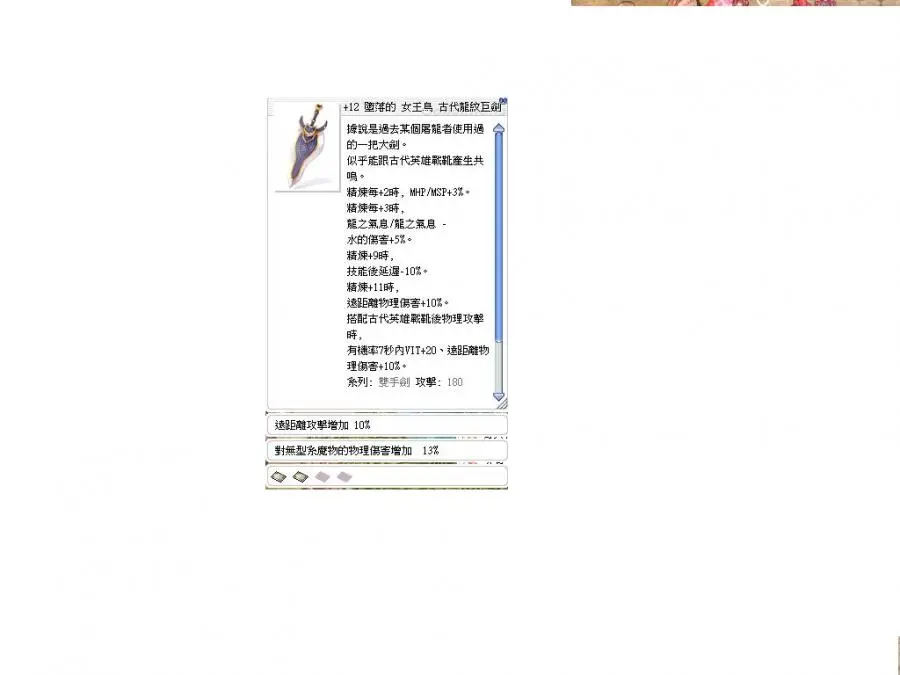 +12古代龍紋巨劍(頂遠10%無屬13%)(龍火頂武)(汙染幽靈+強化邪弓套卡)