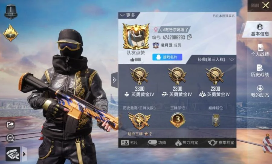 账号描述:安卓QQ 【外观套装】金羽特工,SS1特训,SS2特训,SS3特训,SS4特训,SS5特训,SS7特训,SS9特训 【枪械皮肤】黄金龙骨平底锅 【三级背包】 幻影战神,水曜玄武【三级头盔】 水曜玄武,金曜白虎,折纸暴龙