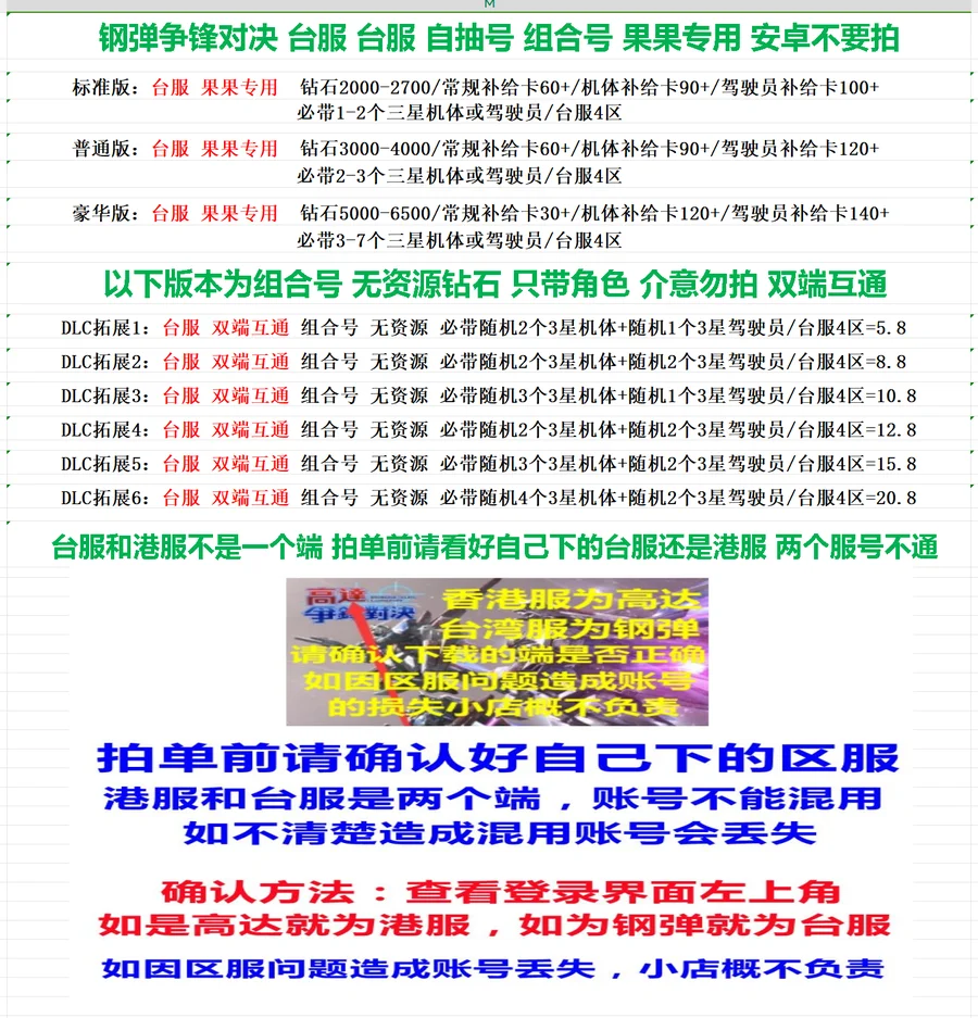 全 8591 首家 鋼彈爭鋒對決-剛彈爭鋒對決港服台服自選自抽開局多SSR組合初始號
