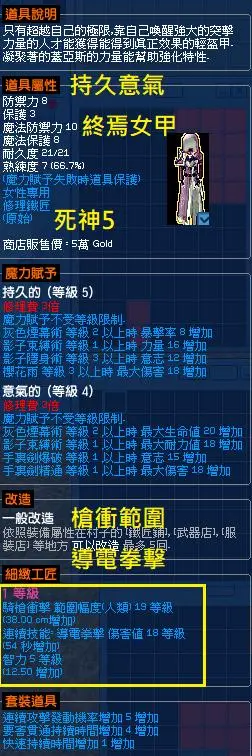 終焉女甲 死神5 賦予持久意氣~槍衝範圍+導電拳擊傷害