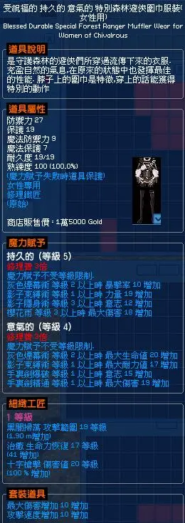 特別森林遊俠圍巾服裝(女)黑闇掃蕩範圍-治癒-十字槍~賦予持久意氣