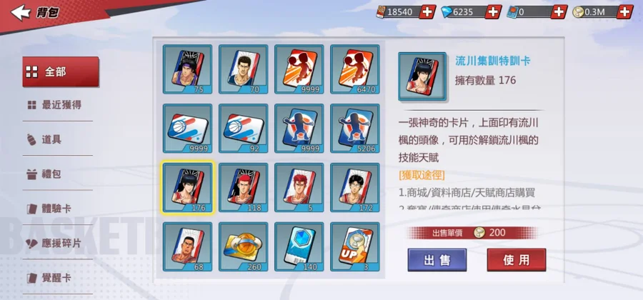 (十二)集訓流川176+/集訓櫻木118+/集訓三井特訓卡55+/黛明特訓卡128張