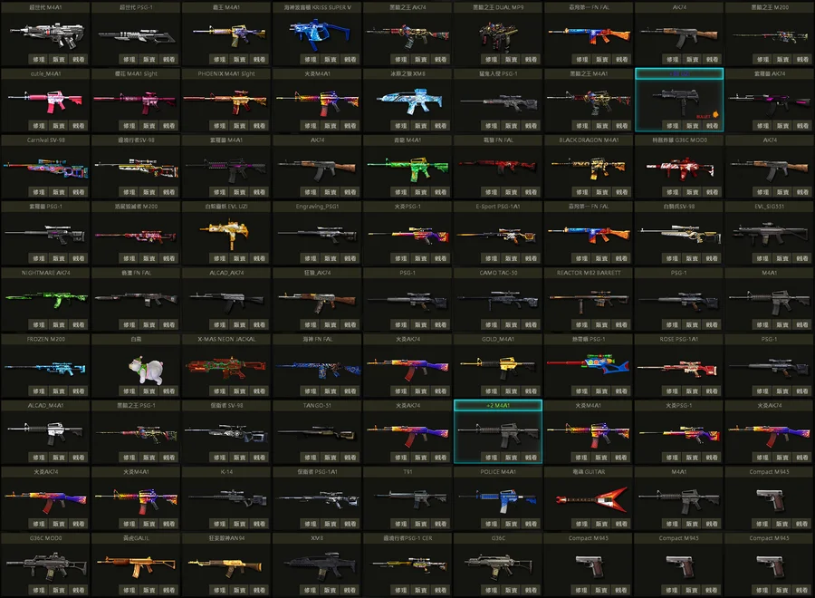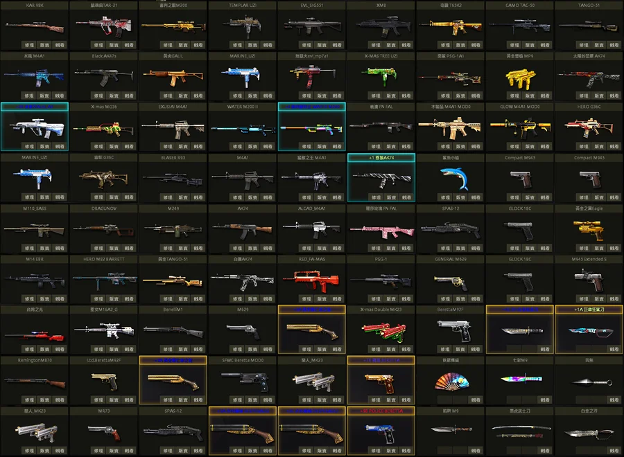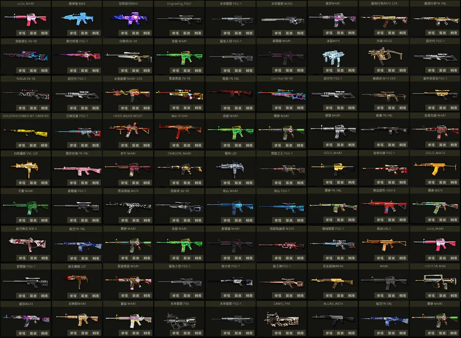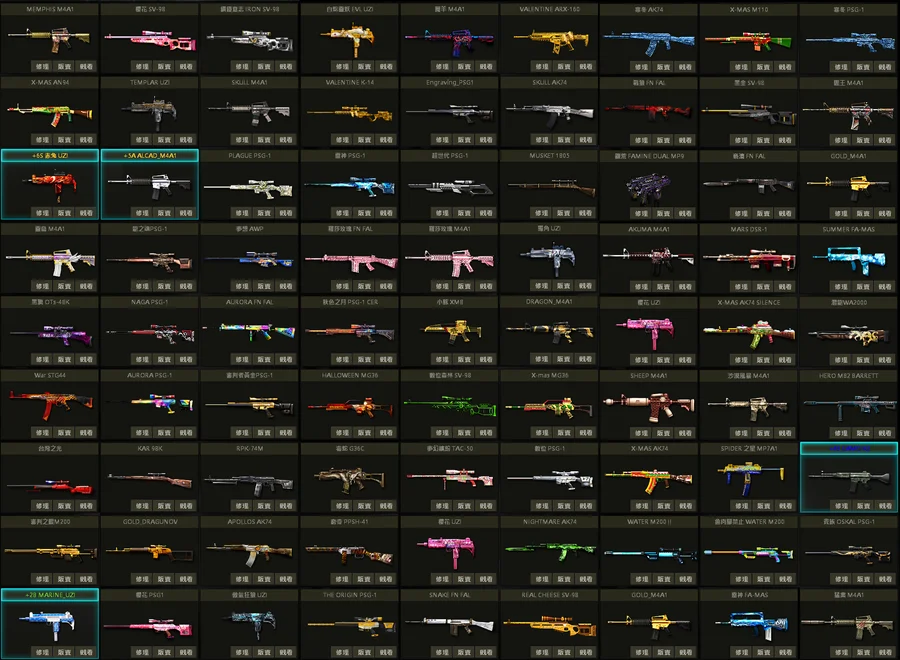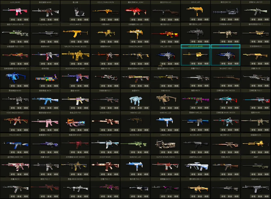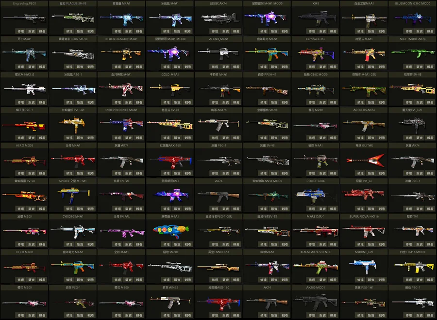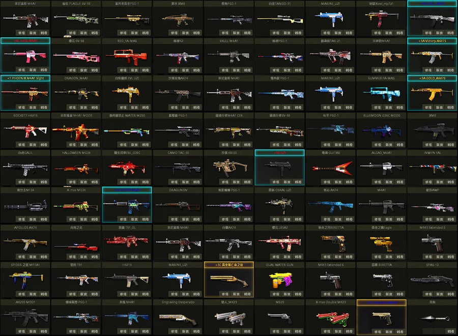 瘟疫P、雷神P、寒冬P、龍之魂P、七彩P、黑暗之王P、黃金P、小豚XM8、海盜狙、饑荒MP9
