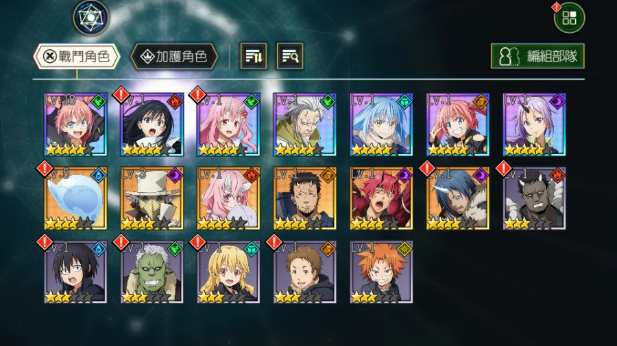 【初始號】【3等】5星X9 夕紫葉(火)+伊弗利特(火加護)+蜜莉姆(風)+利姆路+白老+紫苑