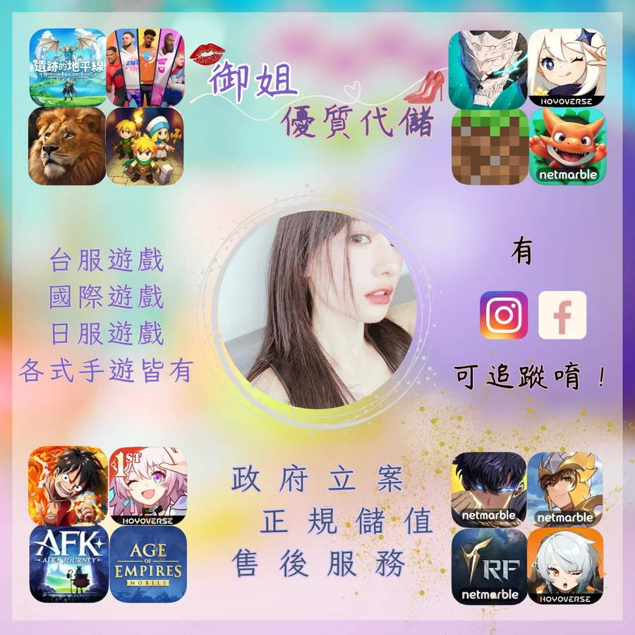 💄請買家提供完整資料,以避免造成您的損失唷!! 💄如果您很急,避免耽誤您的寶貴時間,下標前請先詢問一下我們是否在線上,小店才能即時幫您處理訂單喲。 💄下單後務必留下正確資料(帳號、密碼、綁定方式、伺服器等),以避免交易發生糾紛。 💄資料留完後,請您關閉遊戲且勿登入遊戲,避免代儲失敗,代儲完成後會立即通知您上線確認。 💄若有強登情況導致您有任何損失(代儲已經扣款卻未收到商品),請您自行承擔後果,本店恕不負責。 💄台灣御姐專業代儲,純粹提供代儲服務並收取服務費用,中間無賺取差額(商品價格=成本+手續費+代儲服務費) 💄每筆交易已包含50代儲服務費,代儲視同民法上之代理,並