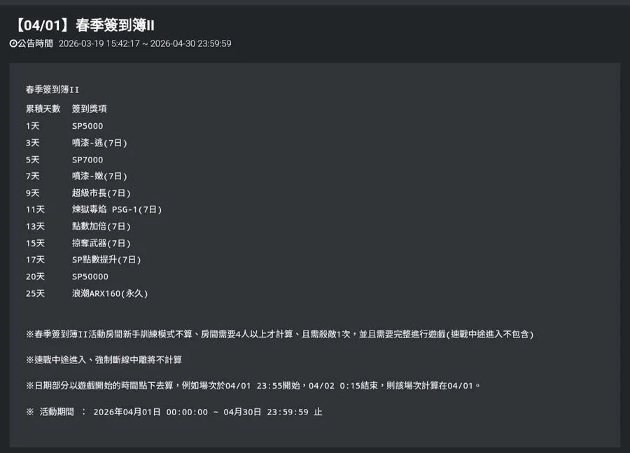 韓吉跑殺🍠 四月活動 春季簽到簿II 獎勵『浪潮ARX160』
