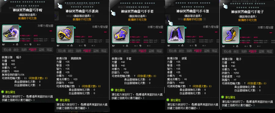傳說神秘防具:200神秘冥界幽靈弓手一套(傳說潛能) 200弓箭手5SET