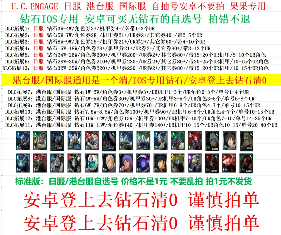 全 8591 首家 機動戰士高達 U.C.ENGAGE 鋼彈爭鋒對決 日服JP 自選自抽多組合初始號