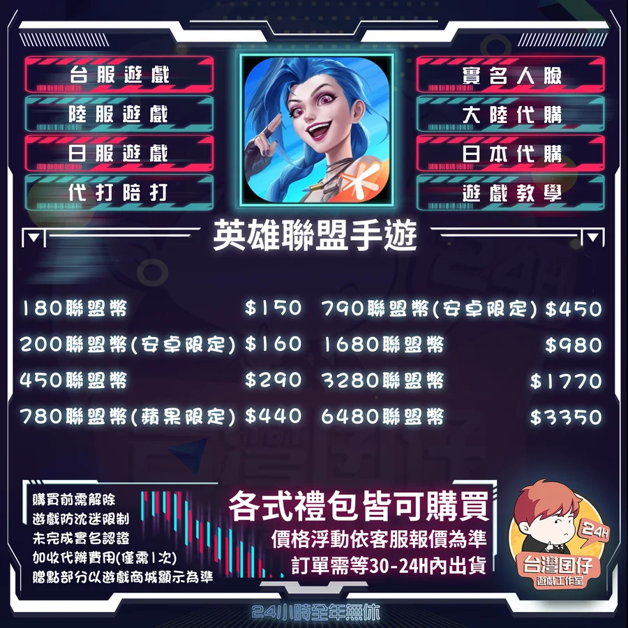 🏆 英雄聯盟手遊陸服代儲賣場|