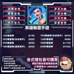 🏆 英雄聯盟手遊陸服代儲賣場|
