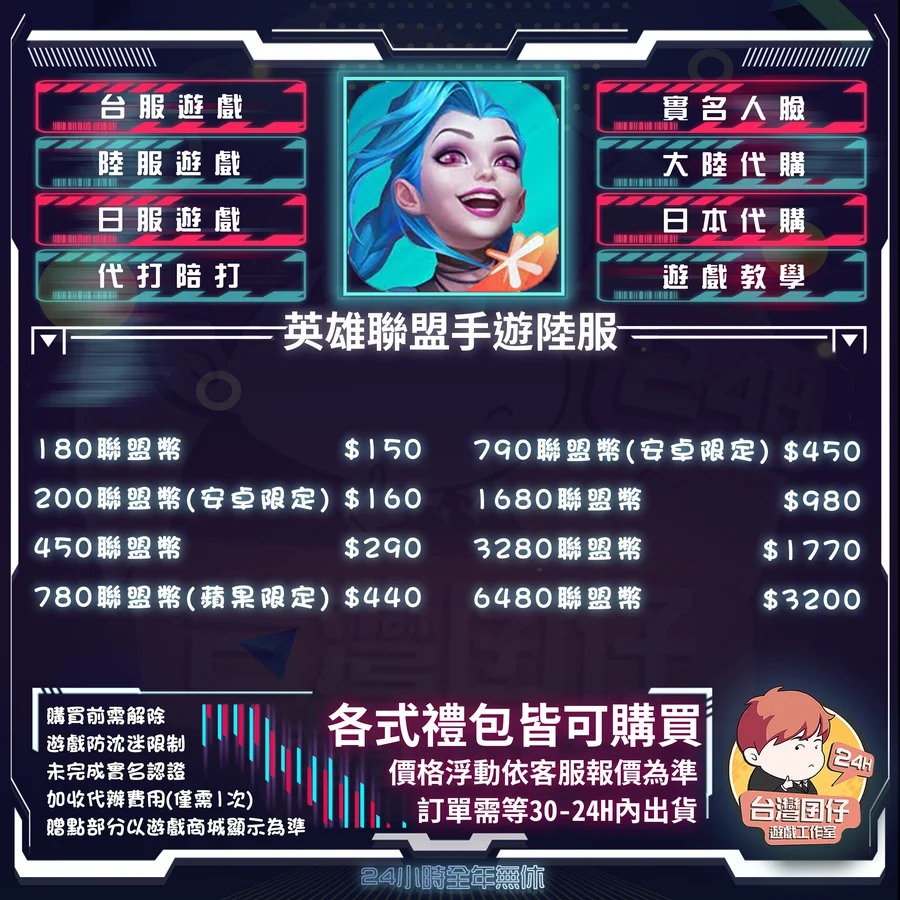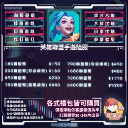 🏆 英雄聯盟手遊陸服代儲賣場|