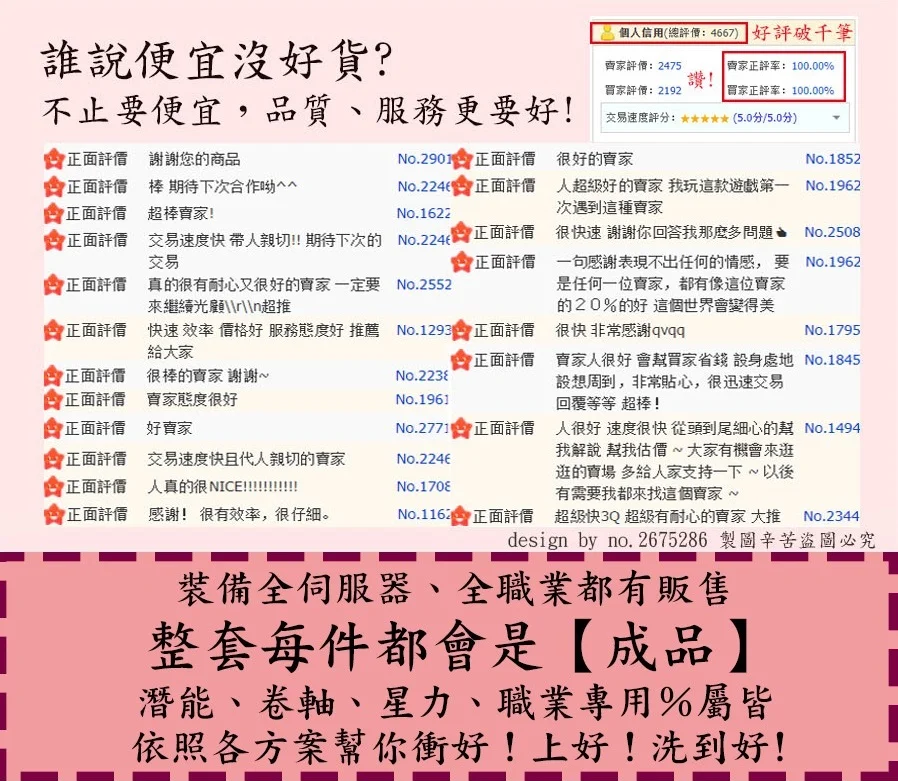 ✔各伺服幣值不同略有浮動請依自身伺服幣值為基準