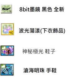 *封印、衣櫥可我出 +商城價:D*實收【共通冰裝手鞋】神秘極光鞋子 50滄海明珠鞋子*3 50【有衣櫥】波光蕩漾(下衣飾品)600【全新】夜空布幕 (上衣飾品) 1500沙灘 午夜藍(下衣飾品)200已售:墨鏡