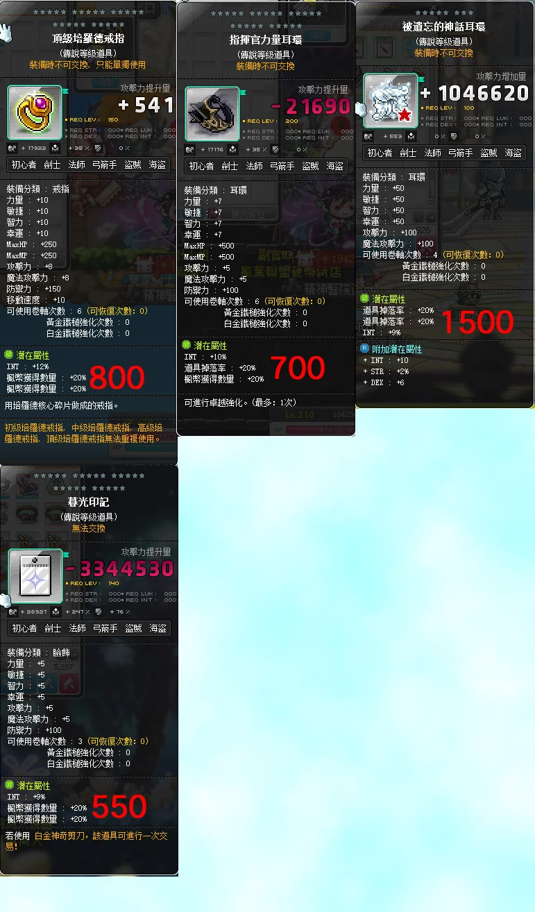 【%智裝】[智] 30%智33%智36%智法師裝 / 小魔大魔 頂鍊頂耳頂戒頂腰 波紋滅龍