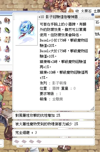 +10 影子經驗值倍增神盾[完全迴避+3] 掛機C%完迴100