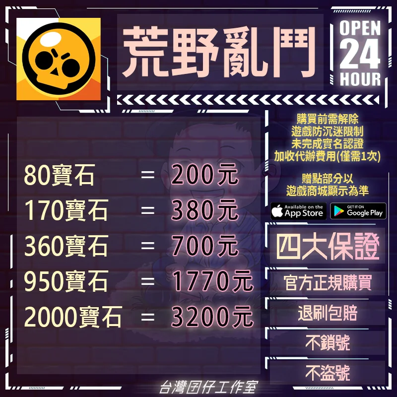 【2000寶石=3200元】🔥荒野亂鬥陸服🏆24H客服🏆現貨秒出🔥台灣囝仔