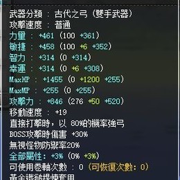 36%幸滅龍、36%智滅龍、雙終物、戰女、神秘劍士、神秘長杖、開拓古代之弓