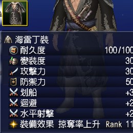 ~海雷丁裝(划船+3,迴避+2,水平+2,掠奪率上升R11)~